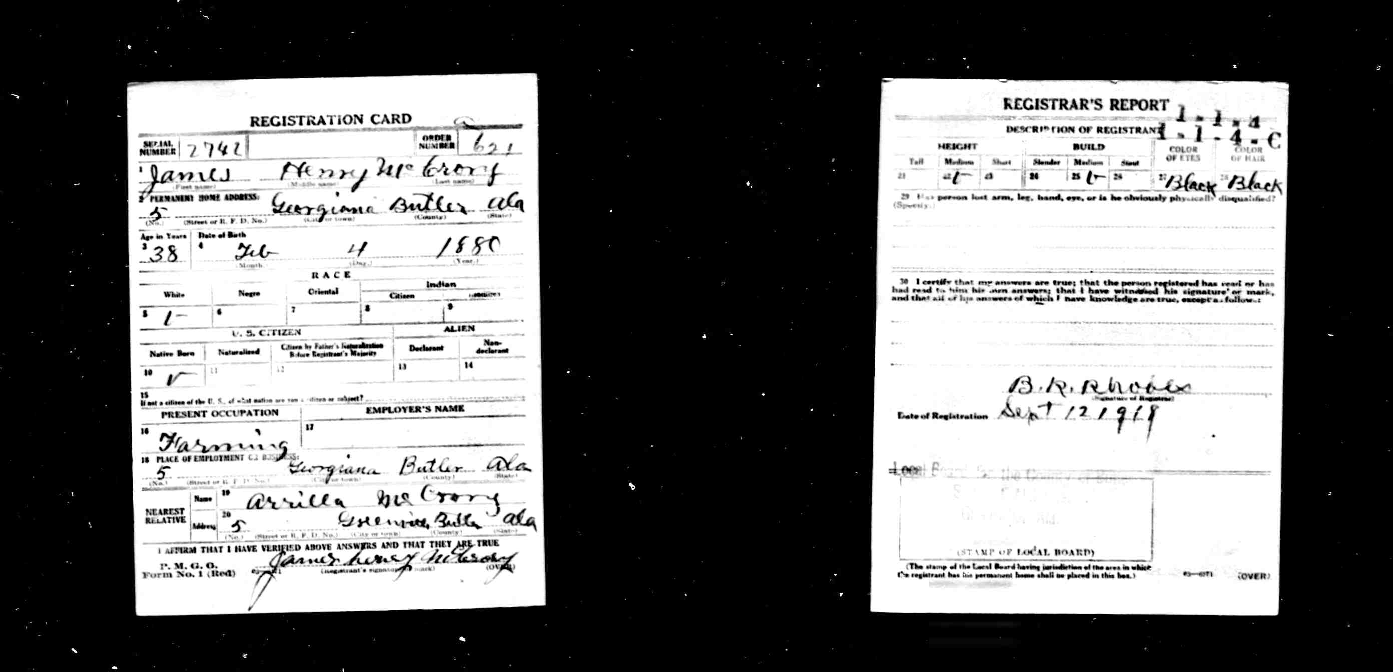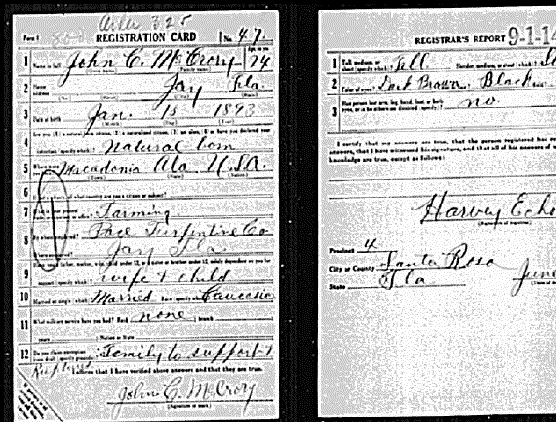 James Henry McCrory WW 1 draft record